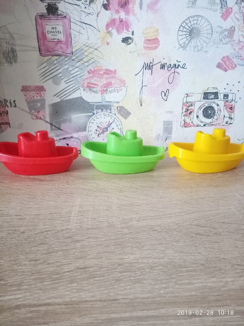 Яркие кораблики для любимого сынули, теперь купаться ходит с целым флотом) Пластик довольно плотный и пережил огромное количество столкновений, падений и выбрасываний за борт ванной.