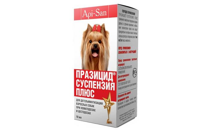 - Празицид Суспензия Плюс 9, 10 и 15 мл. Применяется для щенков средних и крупных пород, взрослых собак.