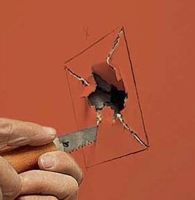 Гипсокартон более хрупкий материал, чем например тот же пеноблок или кирпич. И соответственно такие стены очень легко повредить каким либо предметом иди вовсе сделав в нем дырку. Если дыра большая то ничего не остается как поставить заплатку. О чем я вам сегодня и расскажу. В статье будет показан один из способов устранения дыр и повреждений в гипсокартоне! Для этого нам понадобятся: Линейка, малярный ножик или маленькая пила, кусок гипсокартона, деревянные бруски, саморезы и шуруповерт. Что делаем! Первым делом нам нужно начертить квадрат вокруг поврежденного гипсокартона. Далее аккуратно отрезаем все не нужные части, чтобы получилось ровное квадратное отверстие. Следующим шагом будет крепление бруска или широкой рейки. Это нужно для того, чтобы наша заплатка хорошо держалась. Закрепляем саморезами брусок в нескольких местах. Берем кусок отрезка гипсокартона и делаем из него квадратную заплатку. Закрепляем заплатку саморезами к бруску, чтобы она не ерзала. Шпаклюем, красим! Все