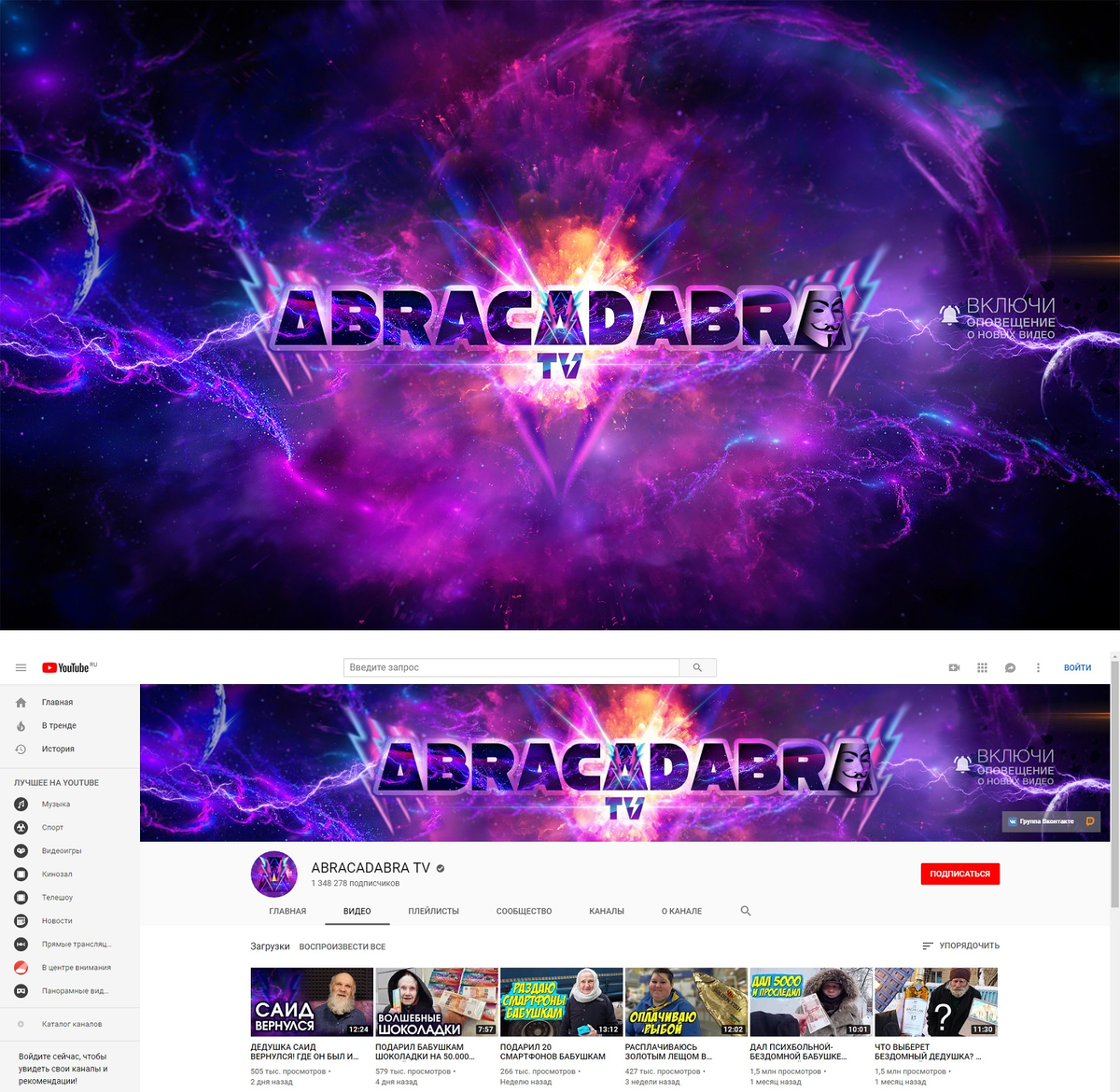 Новый дизайн и оформление популярного Youtube канала ABRACADABRA TV