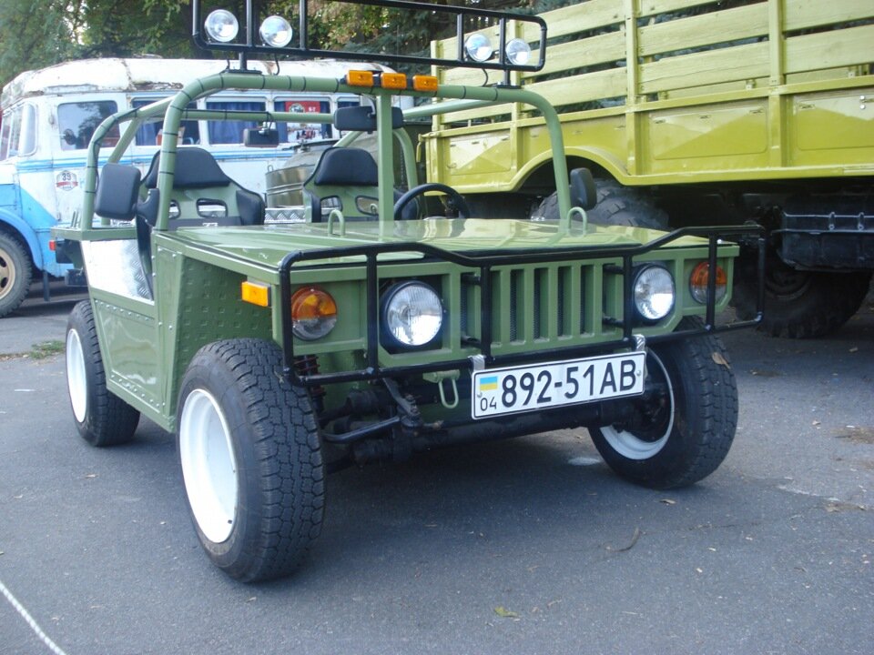 Украинец собрал данный автомобиль из автомобиля ЗАЗ. По его словам это его не первое творчество. Этот авто был на соревнованиях и принимал участия на выставках. Прозвище у авто Маленький миллитарист. Был куплен ЗАЗик и разобран полностью. Кузов был выброшен в чер. мет. Подвеска, кпп и двигатель остались для самоделки. После того как разобрал ЗАЗ, начал варить раму на новый автомобиль, из металлической и профильной трубы. Сразу же подогнал двигатель и кпп. Установив подвеску от того же запорожца, приступил к внешнему виду. Облицовку делал из стеклопластика и рифленого алюминия. Покрасил в зеленый цвет. Приборная панель и сиденья сделаны своими руками. Спидометр и все датчики установлены от того-же ЗАЗа. Дальше стал думать что делать с колесами. Было принято решение сделать разварки, диски стали шире на 80 мм. Собрал весь автомобиль в единое, установил двс и кпп после покраски и вот что получилось в итоге. Более подробно можно узнать здесь! Спасибо за внимание!!! Подписывайтесь на кан