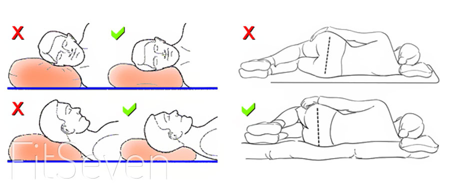 При этом положение ног во время сна напрямую влияет на положение позвоночника — в идеальном случае бедра должны располагаться ровно одно под другим. В противном случае позвоночник искривляется, возникают области чрезмерного сжатия и чрезмерного растяжения. Слишком мягкий (или слишком твердый) матрас также влияют на правильность положения позвоночника.