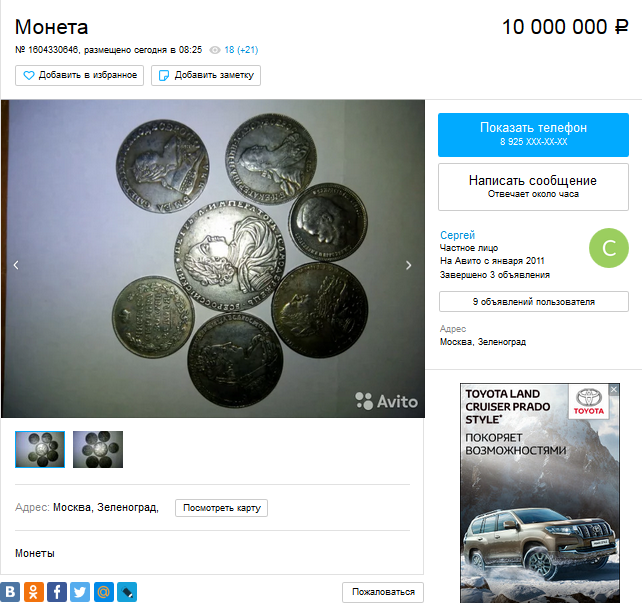 Считается, что нумизматика это хобби королей, но в настоящее время даже мы, простые смертные, можем позволить себе это увлечение - монетные дворы разных стран выпускают много интересных монет - как памятных и юбилейных, так и обычных оборотных монет. Стоимость их, как правило, не велика. Но есть монеты редкие, эксклюзивные и очень ценные, стоимость которых может быть просто заоблачной. И вот сегодня, подыскивая новый экземпляр себе в коллекцию, заглянул на сайт объявлений Авито: Неужели у продавца залипла клавиша "0" на клавиатуре?! Откуда такие цены? Наверное это очень ценные раритетные монеты... Однако, нет. По фотографиям отлично видно, что это всего лишь дешевые китайские копии рублей Российской империи. На известном китайском сайте такие продаются чуть ли не килограммами. Возможно, продавца этих монет уже "нагрели" цыгане у метро, рабочие откопавшие клад или наследники умершего нумизмата, которые предлагают эти якобы раритетные монеты по, казалось бы, бросовым ценам. Помните - бе
