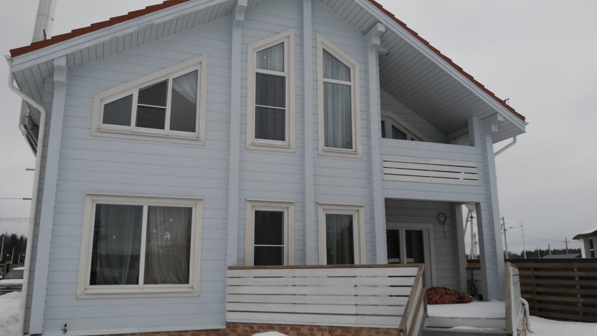 Дом мне покрасили в 2014 году укрывной серо-голубой краской. Через пару лет краска начала шелушиться с солнечной стороны дома, еще через год еще сильнее. В 2018 на солнечной стороне дома отпало 15-20% краски и уже пришлось перекрашивать. Покрывая дом снаружи бесцветной или укрывной краской будьте готовы перекрашивать дом каждые 3-5 лет или делать косметический ремонт. Если делать это через компании, то это очень недешевое удовольствие. Так косметический ремонт вам обойдется в 300-400 руб. за квадратный метр дома.