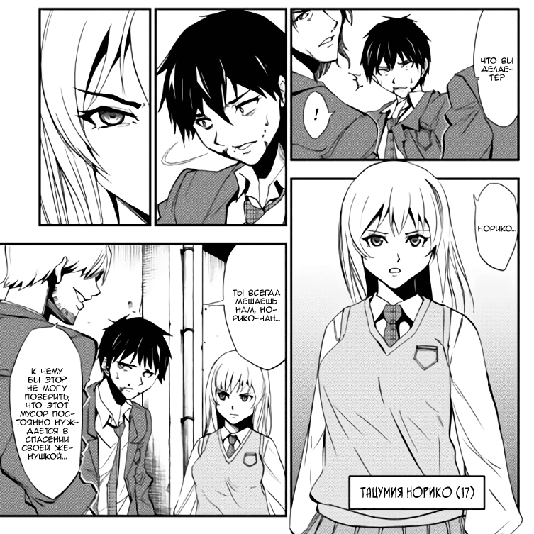 Эта история рассказывает нам о главных героях, которые перенеслись в другой мир. Лично я такие истории очень люблю. Но, обычно, в таких историях вы привыкли видеть главного героя у которого суперспособность и он всех убивает в последний момент. Если бы эта история была об этом, то мы бы о ней не писали. Мы ведь пишем об интересной манге ! Мы начинаем с того, что над главным героем издевается банда хулиганов и его спасает подруга детства. Но тут бах, и они оказываются неизвестно где, а перед героями появляется бог.