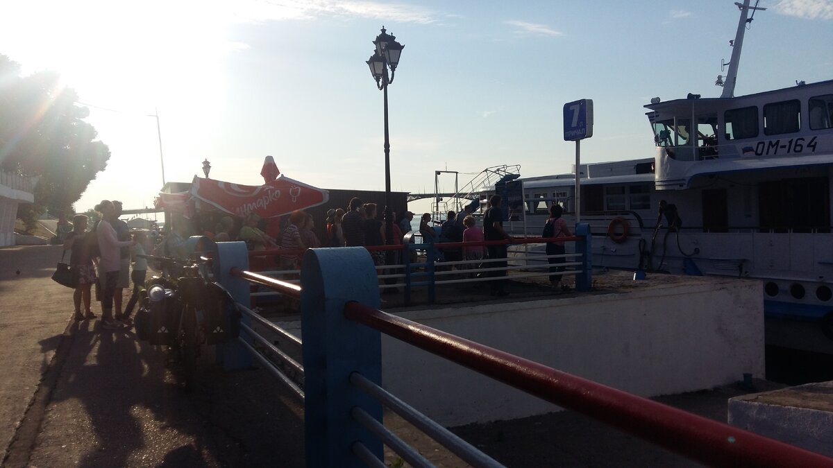 Пока мальчишки-матросы раскидывали что-то на носу судна, мы предусмотрительно сняли с багажника сумки. Потом один из них спрыгнул на причал, и подозвал нас поближе. Подхватив мой велосипед под раму, на вытянутых руках передал его второму - на теплоходе. Потом сережин. И мы последними загрузились на борт.
