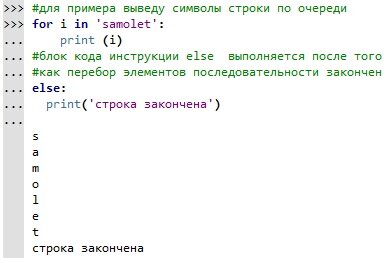 else – необязательная часть инструкция else выполняется, когда все элементы последовательности кончатся.