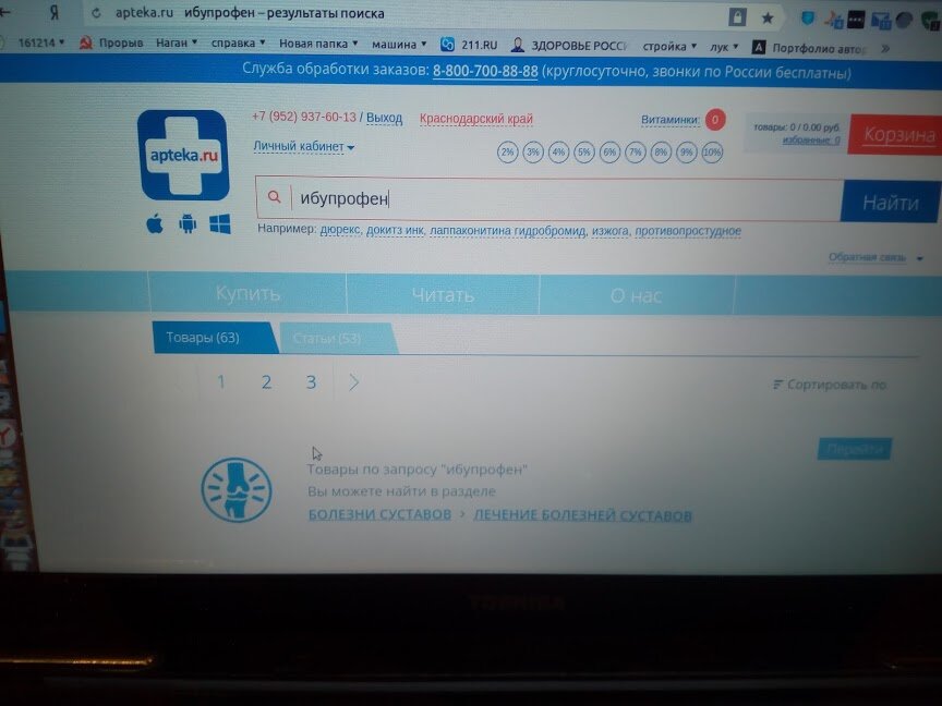 В Абинске кое-что уже приходилось покупать в обычных аптеках, но когда не удалось купить то, что было необходимо, задались вопросом об интернет-аптеке. И на удивление она есть. Правда всего одна - Apteka.ru, и минимальная сумма заказа у них 200 рублей, зато доставка бесплатная и цены приемлемые. К примеру ибупрофен ( 50 таблеток по цене 31 руб), в то время как в Магнит-аптеке предлагали купить 10 капсул за 120 рублей. Согласитесь, разница ощутима. За одним к ибупрофену были заказаны парацетамол, аскорбинка ( для детей) по 7 рублей и гематоген по 9. В-общем, до нас тоже добралась цивилизация:-) Заказ приходит в аптеку в центре ( Республиканская, 39). Завтра поедем - заберем. Кстати, информация о состоянии заказа приходит на телефон в виде смс. А когда заказ придет в аптеку, Вам позвонят.