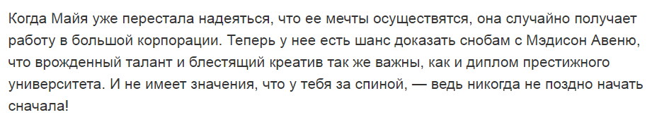 1."Начни сначала" 2. "Ким Пять-с-плюсом" 3. "Стажер" 4. "Старики под Присмотром" 5. "Нас не проведешь" 6. "Однажды в Америке или чисто русская сказка" 7. " Приключения Аладдина" 8. " Пышкa"