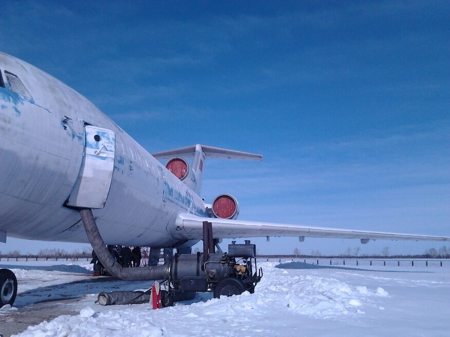Когда я впервые прибыл на учебную АТБ, мой взгляд почти сразу же упал на местного "гиганта". Конечно же, это всё шутки. Як-42 гигантом никак не назовешь, но по сравнению с остальной техникой он являлся самым большим на базе. Немного истории: Этот экземпляр прилетел на нашу УАТБ своим ходом, приземлившись на грунтовую ВПП. Нашел единственную архивную фотографию советского времени, где был запечатлен этот момент: Именно наш Як-42 отличается тем, что он был выпущен до 1982-го года. Если вам интересно, можете прочитать в интернете причины, по которым производство Як-42 после этого года было временно приостановлено. Другие самолёты появились лишь спустя два года. Вернёмся к практике. Чем же вы занимались на пустом самолёте? - Спросите вы. А я отвечу: Брали распечатанные преподавателями задания, подгоняли подогреватель с рукавом к самолёту (в зимнее время) и начинали лазить по нему. Кому-то попадалось задание - открыть створки капотов двигателя и провести ос