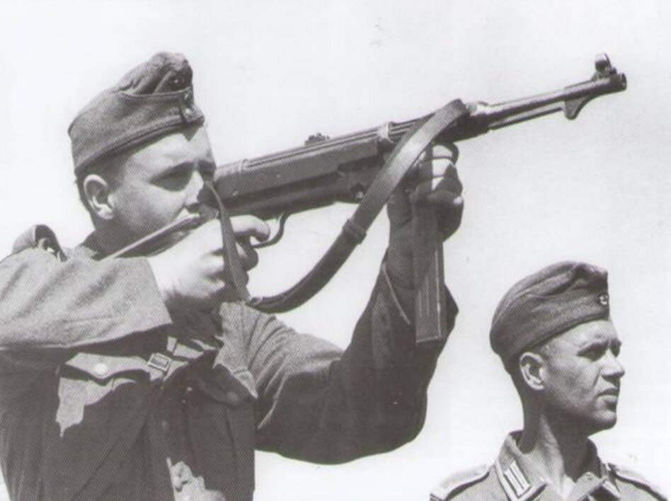 Те, кто называет данный пистолет Шмайсер очень ошибаются. Шмайсер не имел никакого отношения к этому оружию. Название MP обозначает Maschinenpistole, переводится как «авто пистолет». Это автомат, разработанный в нацистской Германии и широко использовавшийся десантниками, танкистами, командирами взводов и отрядов и другими войсками во время Второй мировой войны. Оружие имеет емкость магазина 32 патрона. Он имеет полностью автоматическую скорострельность с минимальной отдачей, что делает его очень точным и дает превосходную дальность для полностью автоматического оружия. Патрон используется данным агрегатом 9-ти мм. парабеллум. Вес данного автомата весьма значительный и равен более 4.5 кг со снаряженным магазином. МР 40 разработан из MP38. MP 40 был изготовлен из штамповки из листового металла, а само оружие было проще и дешевле в изготовлении. MP 40 использовался офицерами и руководителями отрядов, но позже в войне были выпущены целые взводы, с MP 40. MP 40 использовался в течение не