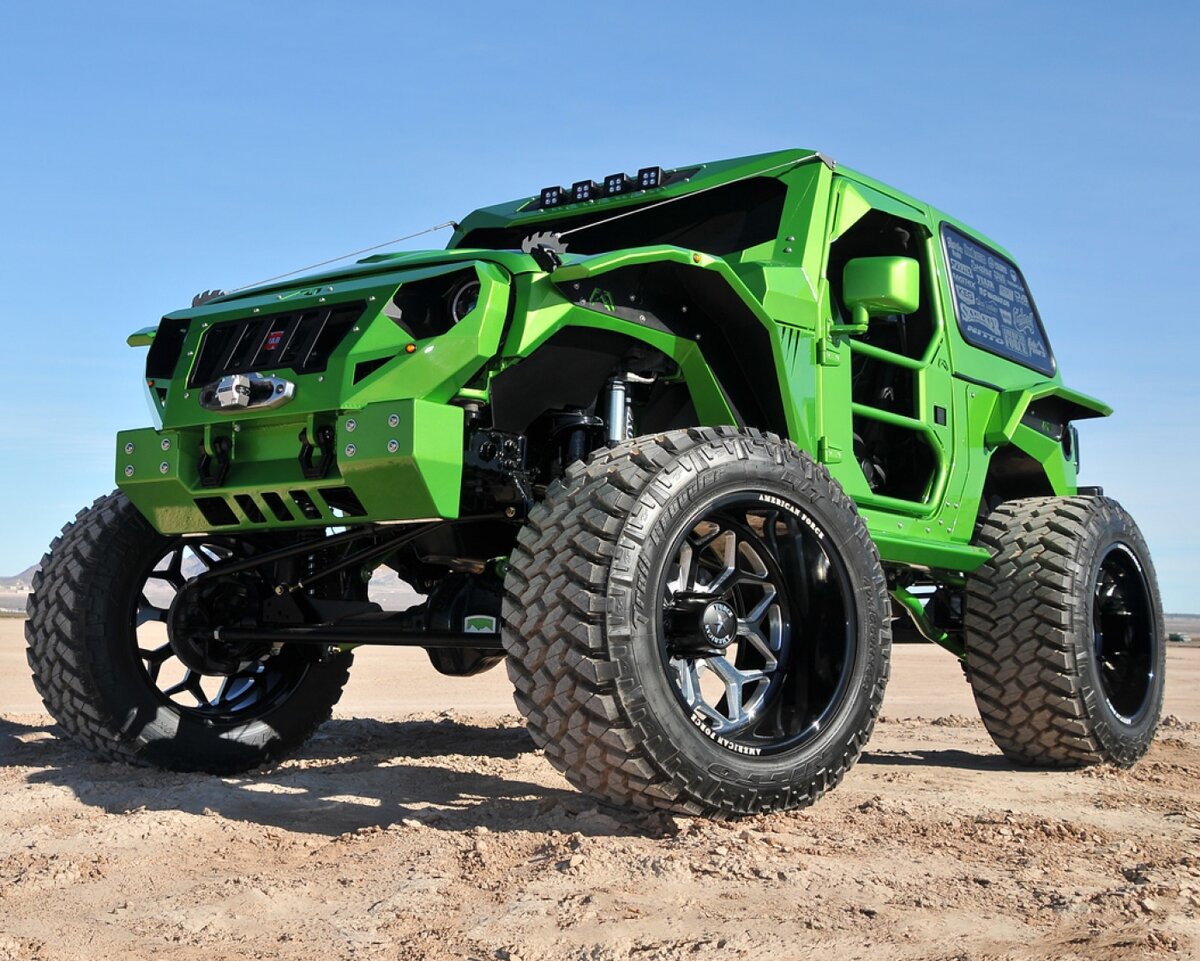 Что будет, если доверить восемнадцатилетнему подростку самому распоряжаться своей судьбой? Вы получите Скотта Кэнгэса (Scott Kangas) из Форт Смит, Арканзас. В 18 лет Скотт поступил на службу в Национальную гвардию. Но страсти к кастомизации машин это не помешало, и параллельно он стал заниматься постройкой траков и продажей автоакустики для дополнительного заработка. Скотт собирал первые машины в гараже, а позже открыл мастерскую Cambered Customs в Форте Смит, Арканзас. Со временем лифтованые траки стали популярнее заниженных, аналогично менялся и профиль работы Cambered Customs. Однажды друг Скотта подсказал ему, что на ранчо неподалеку фермер продает Jeep. По просьбе жены они съездили на «смотрины», остальное уже история. На момент покупки машина была в весьма удручающем состоянии. Джип был на ходу, но выглядел плохо. Первым делом взбодрили мотор. При пробеге в 120 000 км V6 на 3,8 литра чувствовал себя прекрасно, так что команда Cambered смело прикрутила на него суперчарджер. С