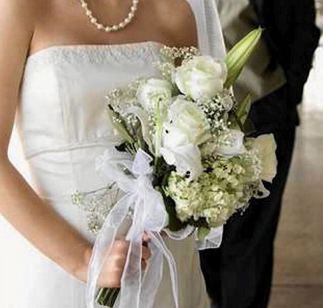 Свадебный букет не обязательно должен быть белым, хотя именно белый является символом совершенства, празднования, невиновности. Свадьба без белого не бывает, но чтобы не наступила однообразие, стоит ее сломать другими цветами. Свадебные букеты должны соответствовать платья и фигуры невесты Форму букета подбираем в стиле творений (это очевидно), но также стоит помнить, что его форма может зрительно улучшить силуэт невесты. Длинные, свисающие связки подчеркивают силуэт, но в то же время сокращают его, поэтому они не подходят для низких дам. Для мелких невест, думала чертами лица подойдут небольшие, собраны букеты круглые или в форме перевернутой капли. Дамам, спортивным, с более мальчишеским силуэтом, предлагаем выбрать букетик в виде купола, лука или апрельского браслета, а людям со зрелыми, женственными формами-классические бидермейерские букеты, достигающие 10-15 см выше ладони. Клумба: между картонными кольцами, оплетенными белыми прядями, были вставлены чесночные соплодия в оттенк