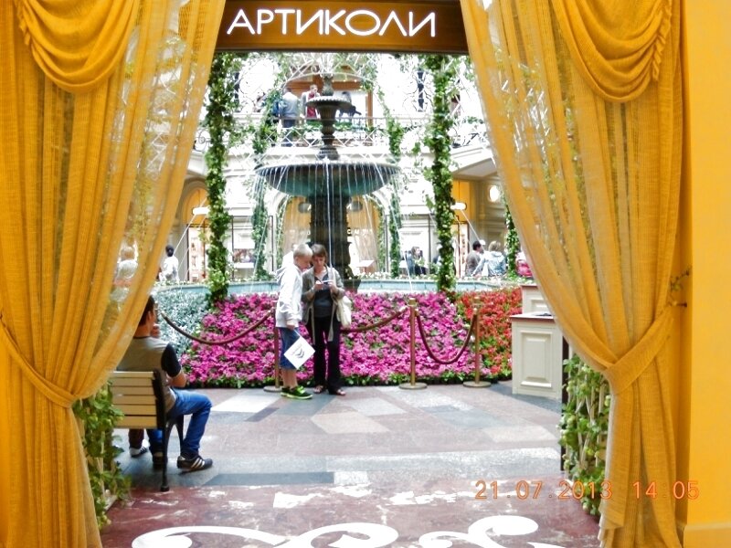 Центром Вселенной в ГУМе всегда был фонтан. Тот самый, у которого я еще в восьмидесятых годах прошлого века встречалась с тетушкой, которая меня в ГУМ привезла и бросила. Ну, это я так думала. А она себе туфли покупала. Я вот тут, кстати, стою.