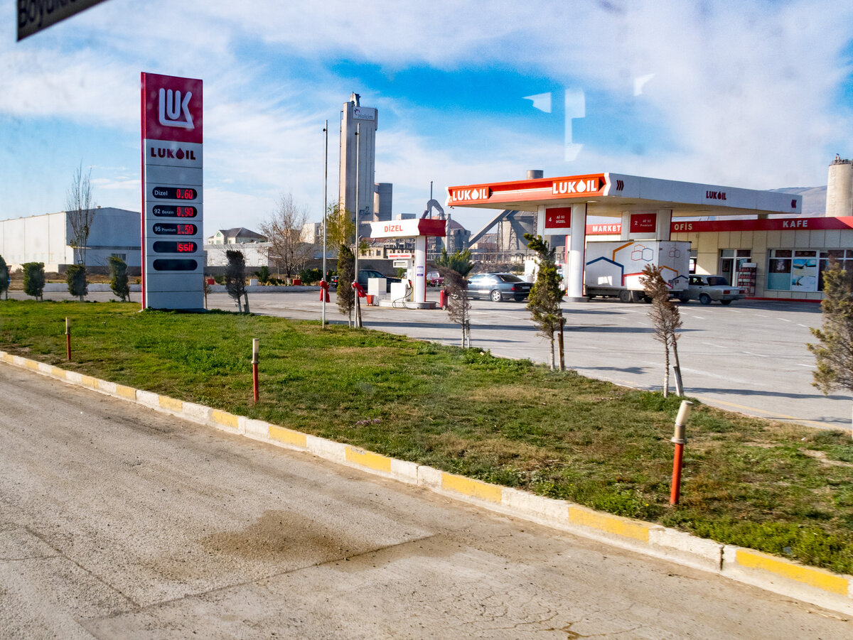 Когда мы отправлялись в путешествие в Баку, то думали, что бензин в этой стране будет стоить дешево, ну или хотя бы дешевле, чем в России. Оказалось, что это иллюзия... Азербайджан - это страна, которая живет и развивается в основном за счет добычи нефти. Если Вы проедите даже совсем недалеко за пределы Баку, то увидите, что нефть добывают практически повсюду. Везде огороженные территории, установленные станки-качалки, резервуары для хранения нефти. Куда не посмотри... А самые престижные и востребованные специальности связаны с нефтедобычей. Нам казалось, что в такой ситуации бензин должен стоить достаточно дешево... Ан нет! Все, как в России... Даже цены на бензин... АИ-"95" стоит 1,5 маната за литр. Это порядка 63 рублей. То есть получается даже дороже, чем в России. У нас то около 44 рублей. С АИ-"92" все обстоит несколько лучше - 0,9 маната за литр (около 38 рублей). Немного дешевле, чем у нас, рубля на 3. То есть в стране, которая находится на нефтяных залежах, бензин стоит дорого