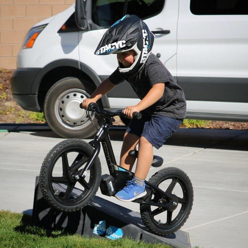 Сейчас на рынке электровелосипедов для взрослых просто огромный выбор, а вот если ваш ребёнок захочет такой же электровелосипед как у папы, вам уже будет сложно,так как мало кто из производителей делает детские электровелосипеды, но если вы всётаки решите подарить своему гонщику похожий на ваш, тоесть такой вариант. Это STACYC EDRIVE, это детский электровелосипед беговел. Он реально крут, и для того что бы гонять на таком ребёнок должен уже быть знаком с обычным беговелом и уметь держать баланс. Для этого не нужен другой велосипед, у данной модели можно отключить питание и снять аккумулятор,и ребёнок будет сначало просто учиться держать баланс и управлять, ну а после того как он научиться можно установит аккумулятор и всё можно устраивать гонки между собой. Идеально подходит для возраста от 4 лет и до 7 лет. Вес ребёнка до 35 кг. Колёса размером 12 дюймов и 16 дюймов.Рама алюминиевая. Весит беговел вместе с батареей 8.5 кг. Есть три режима мощности Аккумулятор литий-ионный, быстр