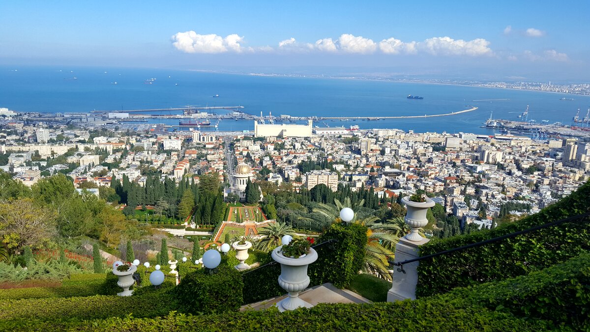 Наш путь в г. Хайфа, а затем в Назарет начинался из Тель-Авива. Это был воскресный зимний день, но очень солнечный и яркий. Мы пользовались автомобилем и дорога не отняла у нас много времени. До первого пункта назначения мы добрались где-то за час. Хайфа - портовый город, с населением 280 тыс. человек. Этот город нам был интересен в первую очередь Храмом религии Бахаи, его садами и видами. Город разделен на две части, нижнюю, где расположен порт и сад, и верхнюю, где находится вход в комплекс Храма. Рядом с Храмом есть большая парковка для автомобилей, но есть большой минус, когда вы пройдете весь путь и спуститесь в сады, то окажитесь в нижней части города. Обратно к автомобилю вам придется добираться на общественном транспорте либо на такси. Если вы хотите узнать всю историю о храме, садах, кто и как все это создавал, то лучше брать экскурсию . Они бывают каждый час. Мы не попали на экскурсию с русскоговорящим гидом, и присоединились к англоговорящим. Гид рассказывает историю о с