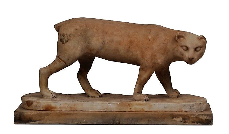 В 1896 году археолог Флиндерс Питри, производивший раскопки Навкратиса, купил в Каире у дилера Абд-эс-Салама Катата целую группу из 20 фрагментов скульптур кошек из импортного мрамора и местного известняка. Все они относятся к периоду Птолемеев - 332-200 гг. до н.э.