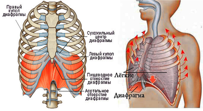 Принято считать, что главный человеческий поршень - это сердце. Сердце качает кровь, перекачивая воистину гигантские литражи по малому и большому кругу кровообращения. Малый круг отвечает за связь сердца с легкими, откуда в кровь поступает кислород и выводится углекислый газ. А большой круг гоняет кровь по всем венам, артериям, артериолам и капиллярам, наполняя их полезным и унося отходы жизнедеятельности. В целом, человеческий организм невозможно разделить на более важные или менее важные органы. Однако, многие врачи, массажисты, мануальные терапевты, и прочие специалисты, забывают о таком важном органе, как диафрагма. Большинство людей знает о том, как важны сердце, почки, легкие, но о том, что такое диафрагма, большинство имеет смутное представление. Что такое диафрагма? Диафрагма - это мышца, которая отделяет грудную и брюшную полость по горизонтали. Диафрагма состоит из двух куполов: правый и левый, а посередине проходит венозное, аортальное и пищеводное отверстие. Венозное отвер