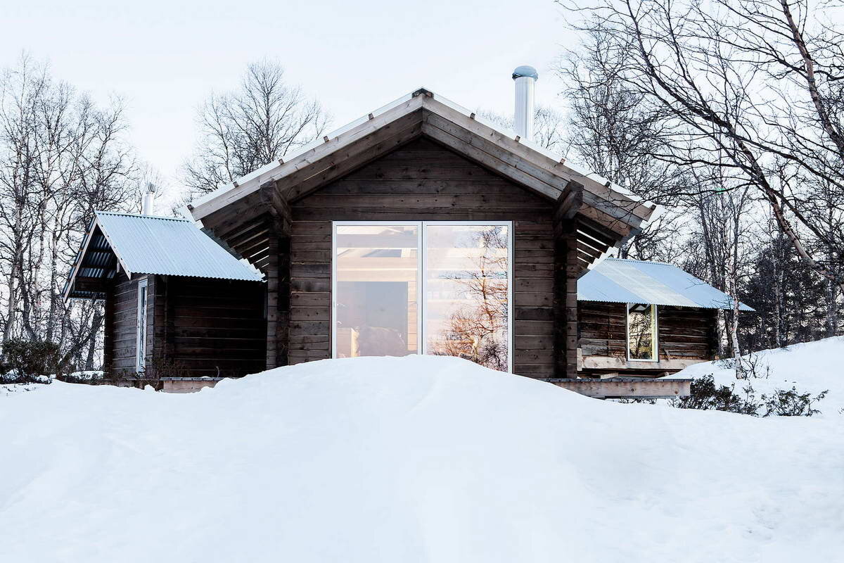 Этот небольшой дачный домик расположен на берегу озера Фемунден, в получасе езды от объекта Всемирного наследия — шахтерского города Рерус и рядом с уникальным природным парком Femundsmarka National Park. На участке уже находились два сруба (одному из которых около ста лет) площадью около 15 квадратных метров каждый, которые по просьбе заказчика были включены в новую композицию. В результате получился Х-образный план с крытой террасой в центральной части. Все конструкции, интерьер и большая часть мебели выполнены из дерева. Двухскатная кровля сделана из комбинации гофрированной стали и полупрозрачных гофрированных кровельных панелей того же профиля. Все три объема были приподняты над землей на 50 см, что создает впечатление, будто здание парит над ландшафтом. Оригинальные постройки используются в качестве гостевой и склада, в новом объёме находится главная «каюта» со всеми необходимыми функциями. Название: Домик в Фемунден (Cabin at Femunden)