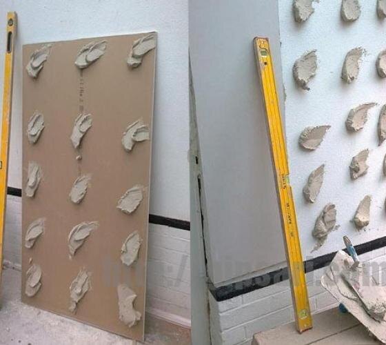 Листовой гипсокартон - очень удобный и практичный строительный материал для выравнивания кривых стен и потолков в доме или квартире. Удобство материала в том, что его монтаж абсолютно не требует специальных знаний, самое важное - соблюдать технологию, о которой и пойдет речь в этой статье. Подготовка материала и инструмента Первый этап - осмотр стены, замер отклонений от вертикали/горизонтали и выбор соответствующего способа крепления листов гипсокартона. Хорошие новости: если отклонение стены менее 20 мм, то вы спокойно можете клеить листы гипсокартона на стену с выравнивающими подкладками из маленьких брусочков или других листов гипсокартона. Если же стена отклоняется от вертикали/горизонтали более, чем на 20 мм, придётся делать каркас, и листы гипсокартона будут крепиться уже на него. Каркас можно соорудить из двух материалов: В обоих случаях для закрепления гипсокартона используется шурик (шуруповёрт) и оцинкованные саморезы. Как быть, если отклонение стены менее 2 см? Как было с