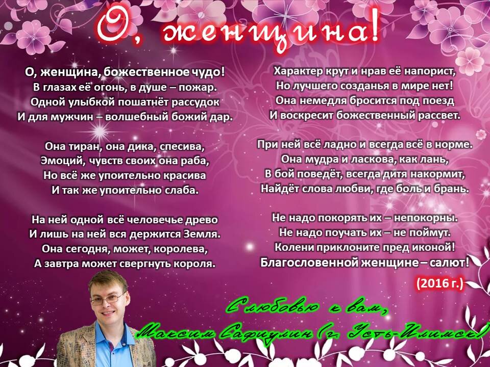И для мужчин – волшебный божий дар. Она тиран, она дика, спесива,