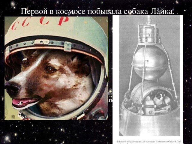 Ей было 2 года, она весила около 6 килограммов, а в космосе она продержалась всего 7 часов - Лайка. 3 ноября 1957 года первое существо было выведено на орбиту Земли. Советские ученые не ожидали ее возвращения. Лайка не вернулась из своего путешествия - причиной смерти собаки был стресс и перегрев. Температура в капсуле быстро повысилась до 40 градусов по Цельсию. Фактический ход эксперимента не был известен до 2002 года. До этого считалось, что Лайка умерла от боли через 10 дней после выхода в Спутник 2. Первый искусственный спутник Земли - Спутник-1 был запущен СССР 4 октября 1957 года. Вывод его на орбиту Земли был первым шагом в космической гонке - политической игре между Соединенными Штатами и Советским Союзом во время холодной войны. Каковы были цели конструкторов космических кораблей? Запуск спутника имеет большое значение для установления прогноза погоды, можно изучать атмосферу в обоих полушариях одновременно. В ближайшее время с помощью специальных камер появится возможность