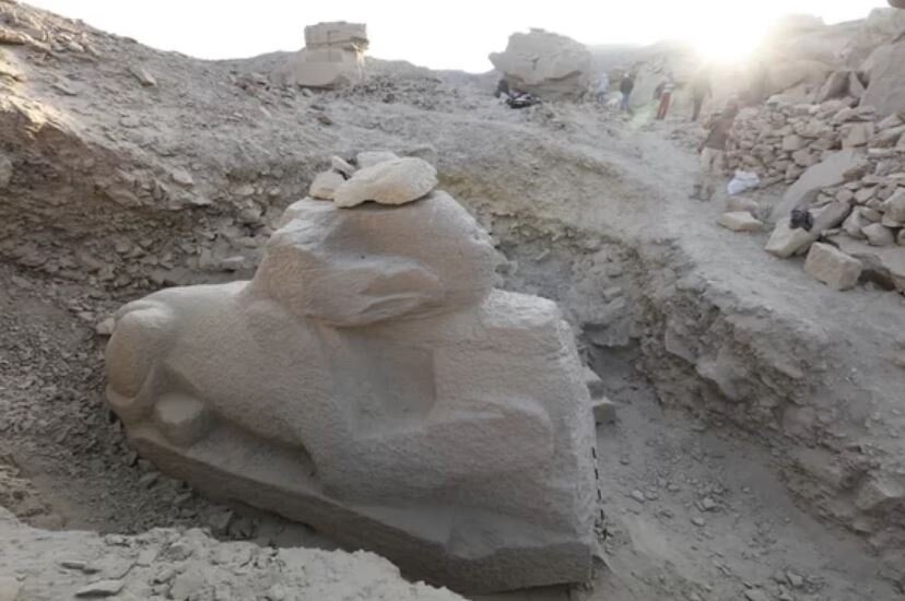 В Египте, в каменном карьере нашли статую сфинкса с головой барана