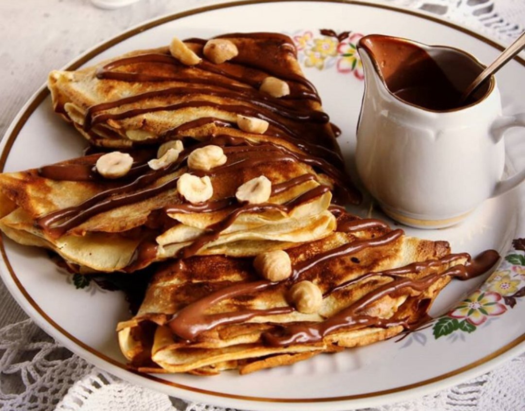Кухня Венгрии очень сытная, разнообразная и питательная. В этой стране готовят много разной вкусной выпечки. Например десертные тонкие слоёные блинчики "palacsinta", фаршированные сухофруктами и политые шоколадом. Предлагаю попробовать приготовить такие тонкие и очень вкусные блины. Как раз скоро масленица. Этот рецепт сладких блинов очень праздничный. Ингредиенты: 2 яйца 1 стакан холодного молока 1 стакан муки сода на кончике ножа лимонная кислота пол чайной ложки 200 грамм сливочного масла 50 грамм изюма 50 грамм кураги 50 грамм чернослива 150 грамм коньяка 1 стакан сливок 200 грамм грецких орехов корица 2 столовые ложки какао 3 столовые ложки сахара соль Алгоритм приготовления: Все сухофрукты на ночь замочить в коньяке. Либо на 2-3 часа. В чашу взбить 2 яйца со стаканом холодного молока и щепоткой соли. Пока взбиваем, просеиваем сразу же сюда муку и все время мешаем. Добавить соду и лимонную кислоту. На разогретой сковороде испечь блины. А для ночинки вскип