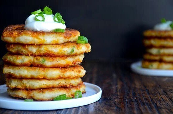 Отличный рецепт приготовления оладьев из картофельного пюре, зелени и сыра Чеддер.
