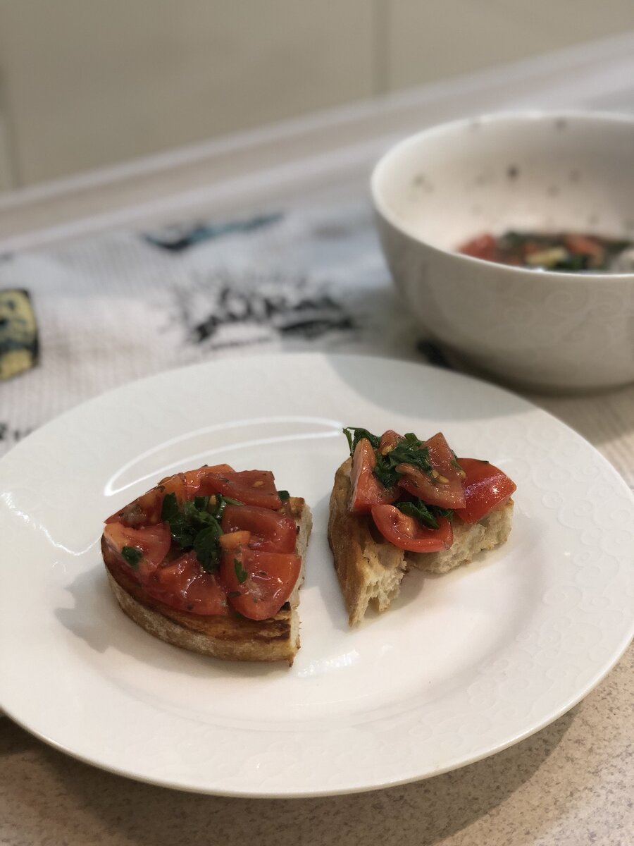 😋Так просто, но безумно вкусно! Такие бутерброды готовила Джули в фильме «Джули и Джулия». Я решила найти рецепт и повторить. ❤️ Мой муж, который не особо любит помидоры, попросил добавки. И я сама не ожидала, что такое простое блюдо получится таким вкусным. Нужно: - хлеб; - помидоры; - чеснок; - лимонный сок; - оливковое масло; - базилик; - соль и перец. 🍞 Обжарить хлеб на сковороде и натереть чесноком. 🍅 Нарезать помидоры, добавить зелень, можно сушенную, оливковое масло, лимонный сок, выдавленный чеснок. 🧂 Посолить и поперчить. 🥪 На поджаренный хлеб выложить помидорную начинку. 🔥 Ну очень вкусно! Хрустящий хлеб и сочная остренькая начинка. 👌 Начинку выкладывайте сразу перед подачей, иначе хлеб размякнет.