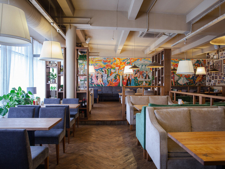 Кафе «Клюква» - уютное место, расположенное недалеко от метро Нагатинская. Домашняя кухня и традиционные русские блюда, знакомые с детства, сочетаются здесь с изысканными рецептами, способными удовлетворить даже искушенного гурмана.В кафе более семидесяти наименований популярных блюд, а также с десяток авторских рецептов. Для тех, кто особенно торопится, в кафе всегда готовы упаковать еду с собой. В зоне take away Вы сможете захватить что-нибудь полезное и питательное, например, свежие овощи с соусом «блю чиз», фруктовый салат, легкий ролл с семгой или бейгл с бужениной. Над интерьером с изрядной долей творчества потрудилась команда креативной лаборатории Klen. Сочетая теплые деревянные поверхности с камнем, используя множество источников света и разнофактурных деталей со всего мира, дизайнеры сделали заведение по-настоящему уютным и дружелюбным. Главный зал нашего кафе может принять 128 гостей на завтрак, обед или ужин, а малые залы – Москва (24 м