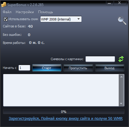 Дата покупки: 5 февраля 2019 года Продавец: Неизвестен Цена: символические 2 руб. Ссылка на товар Описание от продавца Программа предназначенная для сбора бонусов на кошельки WebMoney. В данной версии программы реализована возможность сбора бонусов на WMB и WMR кошельки. Сбор бонусов полностью автоматизирован: Вам просто необходимо написать номера кошельков (можно несколько кошельков одного типа, но относящихся к разным WMID), сохранить эту информацию и нажать кнопку «Старт», по окончании сбора будет выдано окно: «Готово! Запросы успешно отправлены.» Мой опыт После оплаты мне пришла ссылка на скачивание архива SuperBonus2_2_6_285. Внутри архива папка с самой программой (.exe) и многозначительный файл "ПРОЧТИ ОБЯЗАТЕЛЬНО". Ничего ужасного в нем не оказалось, это была просто инструкция по установке и началу использования. В файле настроек я прописал номера своих кошельков и запустил, хотя это можно было бы сделать и в Настройках в самой программе. Внешний вид вот такой: Как я понял на