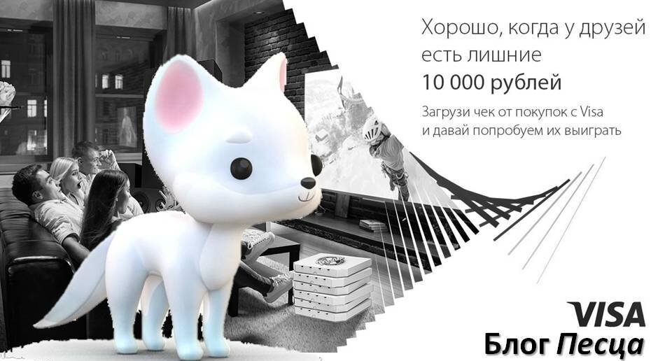 В конце февраля платежная система Visa запустила отличную акцию "Покупки с Visa к деньгам" в ходе которой каждый, кто использует карты visa может получить 100 рублей на мобильный телефон. Для участия в акции требуется выложить фото любого чека, оплаченного картой Visa любого банка на сайте акции Сумма чека должна быть более 350 рублей. Стоит поспешить, акция идет уже неделю, а по 100 рублей на телефон получат только первые 20 000 пользователей, загрузивших чек. Помимо гарантированного приза в 100 рублей загруженные чеки принимают участие в еженедельном розыгрыше 10 000 рублей. Лайфхак от Песца: чтобы принять участие в розыгрыше 10 тысяч рублей можно и не загружать чеки: достаточно зарегистрироваться и кликнуть по иконкам социальных сетей, предлагающих поделиться записью, при этом делиться не обязательно- после клика по иконке, счетчик чеков, участвующих в розыгрыше увеличится на один. (кликать можно 3 раза каждую неделю) Так же Вы можете принять участие в розыгрыше 100 тысяч рублей: