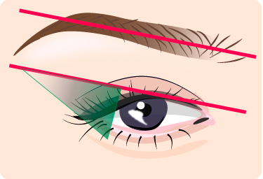 Чтоб тушевка глаз не превращалась в бесформенное пятно, ориентируемся на линии параллельные брови. У нас должен получиться воображаемый треугольник в тушевке, где основание имеет наибольшую интенсивность по цвету, а вершина исчезает до полной прозрачности, но именно к ней мы ведем кисть, растягивая тени.