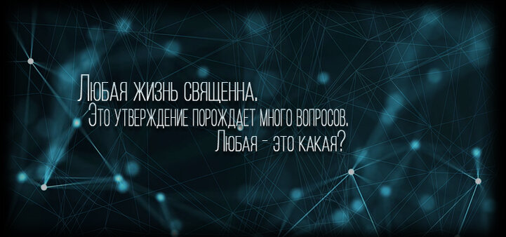 Так священна ли жизнь? И если да, то чья? Я не рискну отвечать на эти вопросы за тебя. Если у тебя ещё нет ответов, то однажды ты ответишь себе сам, и надеюсь, ответы будут честными. Цель этого разговора заключается в наглядной демонстрации того, что чужая жизнь, в основном, не имеет для нас никакой ценности. По природе мы эгоистичны, и ищем блага для себя. В чем бы оно не заключалось. А к любой жизни нужно относиться с уважением. Но нельзя говорить о её святости и тут же идти жрать пельмени.