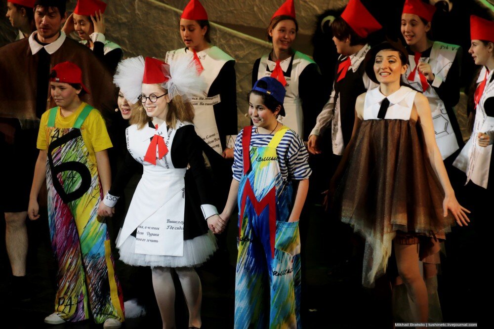 Начинается спектакль со снов, которые видят Баранкин и Малинин, в которых одноклассники взывают к их совести. На экранах воспроизводился интерьер их квартир, их вещи. А в конце сна их посетила строгая фея - Староста класса Зинка Фокина. Кстати, у девочки, которая играла эту роль, был день рождения, с чем её и поздравили по окончании спектакля. Ей очень идёт эта роль, этакой строгой и правильной знайки. Но, знаете что, она была слишком правильной, а в жизни же надо уметь немножко хулиганить и смеяться. И вот в самом конце, когда Баранкин с Малининым неожиданно целуют её в щёчки, она тает, она растерянна, и, вот уже перед нами просто обычная девчонка. "Это почему я такая строгая была, потому что за мной никто не ухаживал", - как бы думает она.