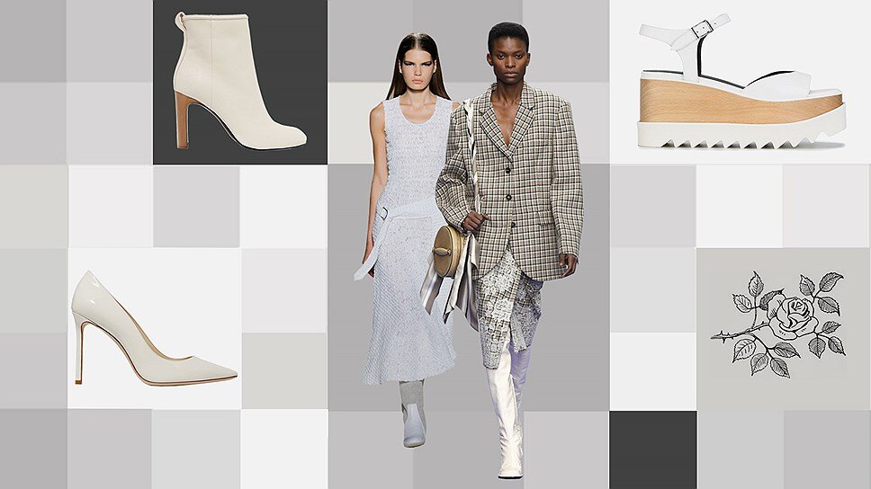 В предыдущей статье очень подробно разобрали тему с чем носить светлую обувь, в этой же статье постараюсь рассказать что делает белая обувь в нашем гардеробе. Надо помнить, что белая обувь при сильном контрасте обрезает ноги. То есть если у вас низкий рост и вам очень хочется одеть белую обувь, то лучше одеть длинную юбку и брюки, а самое главное, чтобы низ не был в сильном контрасте с верхом! Брюки не должны быть темными, а лучше всего если весь образ будет в светлых или пастельных тонах. Ну а если ваш рост полностью вас устраивает, то не бойтесь контрастов! Не бойтесь черных плотных колготок или ярких цветов! Хотите сделать ноги более изящными, тогда выбирайте модели с вытянутым носом. А если наоборот у вас большой размер ноги, то выбирайте обувь с обрезанным или квадратным носом. А еще лучше подумайте о том, что вам может отказаться совсем от белой обуви, так как ботинки 41 размера белые ну не очень гармонично будут смотреться. И не обязательно, чтобы в гардеробе было две белые вещ