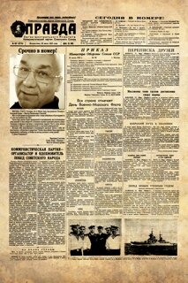 Поздравление через газету «ПРАВДА» Это же просто конгениально придумано — поздравить человека с Днем Рождения через выпуск легендарной советской газеты Правда от того дня, когда этот человек родился! Как это выглядит в реале видно на картинке слева. Только я поменял фотографию именинника на свою из соображений приватности. Думаю, что ребята, придумавшие и осуществившие этот проект, если и не озолотились, то уж точно недостатка в заказах не испытывают! А всего лишь и надо было, что договориться с редакцией газеты Правда, чтобы получить допуск к их архивам и соблюсти авторские права, плюс купить хороший принтер для печатания страниц газеты. В подарок входит: титульная страница, довольно большого размера (А2), помещенная в красивую рамочку, которую можно повесить, к примеру, над своим рабочим столом. Плюс к титульной прилагаются и все остальные страницы выпуска, но уже без рамочки. То есть, так как выпуск газеты абсолютно реальный, имениннику предоставляется замечательная возможность узна