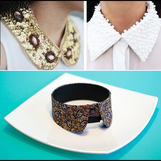 Еще в тринадцатом веке накладной воротник был важным аксессуаром в гардеробе каждой женщины: воротник считался символом знатности, богатства. В девятнадцатом и двадцатом веках в моде были кружевные воротники, добавляющие в образ элегантности и благородства. А как спасал накладной воротничок скучную коричневую форму советских времен! Сейчас, когда ретро-стиль вновь на пике популярности, накладные воротники полноправно заняли свое место среди модных аксессуаров, наряду с сумочками, ремнями и бижутерией. Причем сфера применения распространилась на все плечевые изделия в женском гардеробе: наряду с повседневными и вечерними платьями, воротнички используются в деловом костюме, с однотонными топами и свитерами, и даже как самостоятельный аксессуар в сочетании с бюстье, под жакет с V-образным вырезом и с топом на бретельках. Значительно расширился и ассортимент материалов, из которых изготавливают воротнички. Рядом с кружевом используются ткань и кожа, бисер, жемчуг и декор