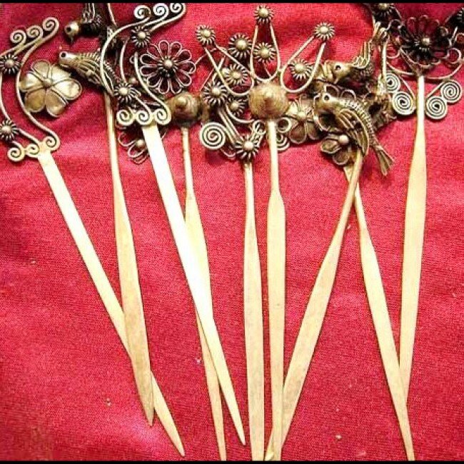 Точно сказать, когда же появилась заколка очень сложно, известен только тот факт, что первые упоминания о ней дошли до нас из глубины времен. Еще до нашей эры этот вид украшения уже существовал на планете. Раскопки, проведенные археологами в Древнем Египте, рассказали нам, что уже в то время заколки были очень широко распространены. Фараоны, жившие в то время, носили причудливые и необычные прически, при этом для их формирования и скрепления использовались разнообразные заколки, которые делали из дорогостоящего золота, а в особые дни еще и дополнялись зажимами, изготовленными из перламутра, и обрамленные жемчугом. Во время торжественных мероприятий женщины, жившие в Греции тех времен, носили на своей голове шикарные диадемы, изготовленные из драгоценностей. В Японии в далеком прошлом напротив заколки принято было носить мужчинами. Делалось это не только с утилитарной целью или для украшения, а также для самообороны. Самураи использовали заколки в качестве метательных предметов