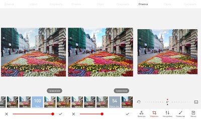 Назовите мне топ-5 наиболее популярных стандартных приложений в системе Flyme OS, наверняка среди них окажется галерея. Раздел, где мы смотрим фотографии, видео, храним запасы отснятого материала. Meizu регулярно добавляет новые функции в это приложение, поэтому с появлением Flyme 6 хочется ещё раз напомнить о его возможностях. Запускаем редактирование картинок, нажав на кнопку с изображение волшебной палочки, она расположена в нижнем левом углу. Появляется меню с 5 инструментами: Фильтры, Обрезать, Настройки, Размытие, Метка. Фильтры - это набор из 18 готовых стилей. Можно попробовать все и выбрать наиболее подходящий, всё ограничено лишь вашей фантазией. Причём двигая ползунок в нижней части экрана заодно меняете «силу» фильтра, решая, как повлиять на исходный кадр. Чтобы понять, как изначально выглядело изображение, нажимаете на кнопку «Сравнение», она находится справа. Нажали и удерживаете пару секунд, смартфон покажет, что было и что стало. Тогда и решите, стоит ли накладывать