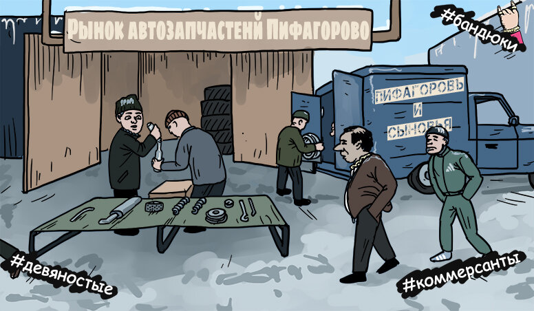 Запчасти закупались оптом обычно в других городах на заводах и туда нужно было ездить самим, потом уже я нанимал грузовики, обычно КАМАЗы — было такте время. Кое что привозили оптом прямо на рынок. Но выходов на самый «забойный» и ходовой товар у меня не было и это погубило бизнес в итоге. Также нужны были доступы к кредитам, которых у меня тогда не было. Конкуренция возрастала и мой бизнес был обречен. Однако три года все было неплохо, мы сняли гараж под склад, который под завязку забили москвичевским «железом» и колесными дисками — очень ходовыми запчастями. Подводил меня ка всегда человеческий фактор — все кто был вокруг меня обманывали и воровали, так что моя наценка на хозяйский товар в мою бытность продавцом — это были всего лишь детские шалости. Учет товара было вести очень сложно в тетради, а компьютеров тогда еще не было или были только у самых крутых коммерсантов.