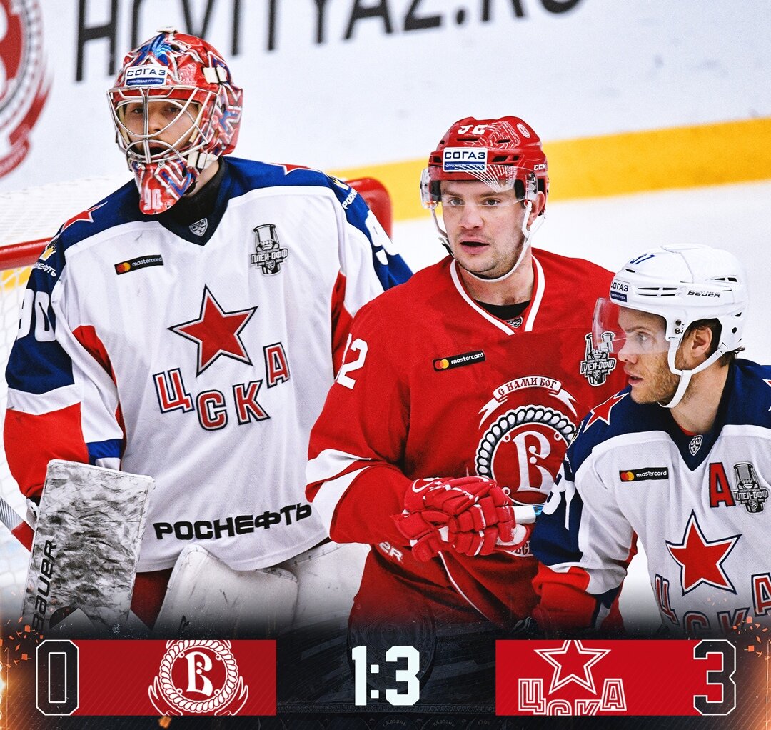 Вчера, как и в любой другой игровой день плей-офф континентальной хоккейной лиги, прошло 4 встречи. В первом матче встречались Московский ЦСКА и Витязь Подольск. В первом периоде проходила равная игра и забитых шайб мы не увидели. Во втором периоде подмосковная команда была активнее, но обе команды смогли забить по одной шайбе. Но уже в третьем периоде армейцы взяли игру под контроль и забив 2 шайбы обеспечили себе победу 3:1. У Витязя на 39-ой минуте встречи отличился Александр Евсеенков, а у ЦСКА – Максим Шалунов, Мэт Робинсон и Антон Слепышев на 28, 45 и 51 минутах соответственно. Во втором матче встречались Спартак Москва и СКА. После двух домашних поражений СКА нужно было брать игру в свои руки, что они и сделали реализовав 4 численных преимуществ на 16, 23 минутах – Никита Гусев, на 24-ой минуте – Владислав Гавриков, на 35-ой минуте – Александр Барабанов. И последнюю шайбу в пустые ворота забил Ярно Коскиранта на 60-ой минуте матча. Спартак смог ответить лишь двумя шайбами – на 2