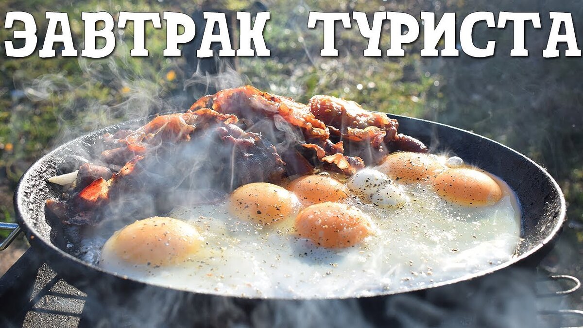 Ранней осенью выезжали на Каму с друзьями, что-бы отдохнуть и порыбачить, отдых удался на славу и приготовили мы чудесную яичницу - Завтрак туристов или как ещё модно принято называть Английский завтрак он же English breakfast. Это чудесное блюдо, быстрое и лёгкое в приготовлении всем советуем приготовить себе и своим близким что-то подобное в походе или порадовать любимую половину этим замечательным блюдом! Ингредиенты: -Яйцо куриное - 5шт -Колбаски охотничьи - 4шт -Бекон сырокопченый - 4 полоски -Помидор - 1шт -Лук репчатый - 1шт -Фасоль консервированная красная - 3 ст.л. -Соль - по вкусу -перец чёрный молотый - по вкусу В разогретую сковородку наливаем растительное масло как только масло разогрелось, отправляем на сковороду бекон и обжариваем его Убираем бекон со сковородки Следом отправляем жарить колбаски К подрумяненным колбаскам добавляем лук После пассировки лука добавляем в сковородку консервированную фасоль и обжариваем вместе с луком Всё содержимое собираем в одном из к