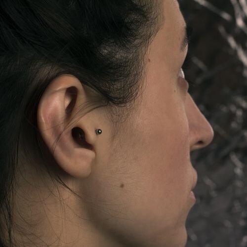 Пирсинг Трагус — это пирсинг уха, когда прокалывается козелок, хрящ на внешнем ухе.