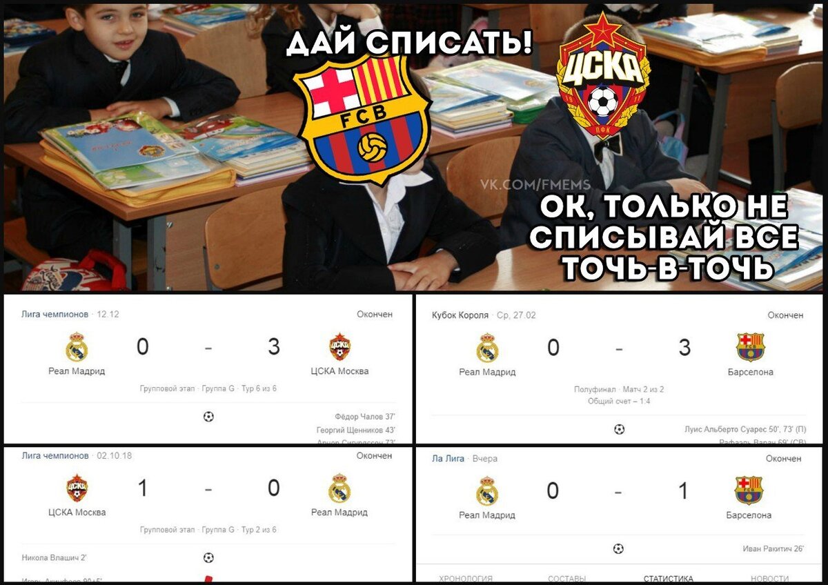 Очередное Класико, очередная победа Барсы, очередной повод потроллить :)! Погнали! 1) Всё с Барсой понятно... 2) Жиза))) 3) Барса и ЦСКА - братья по выносам Реала :) 4) ЦСКА велик! 5) На пафосе :) 6) Коротко о ситуации в Реале... 7) Ничего удивительного... 8) Согласен? 9) Слишком изи для Барсы! 10) Парам-па-пам! Фаны Реала, без обид... Мы уже пилим свежую подборочку, поэтому спеши ПОДПИСАТЬСЯ!