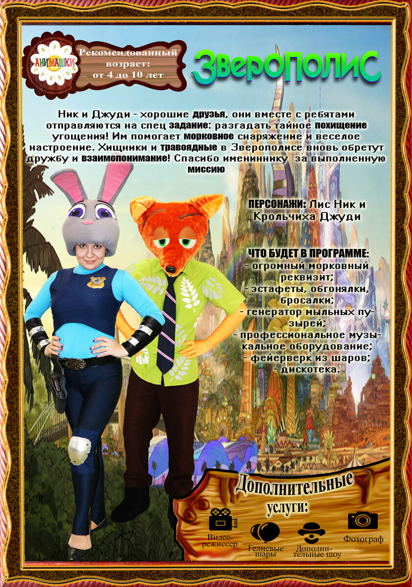 #Ник и #Джуди - хорошие #друзья, они вместе с ребятами отправляются на спец. задание: #разгадатьтайное #похищение угощения! Им помогает морковное #снаряжение и веселое #настроение. #Хищники и #травоядные в #Зверополисе вновь обретут #дружбу и взаимопонимание! Спасибо #имениннику за выполненную #миссию.