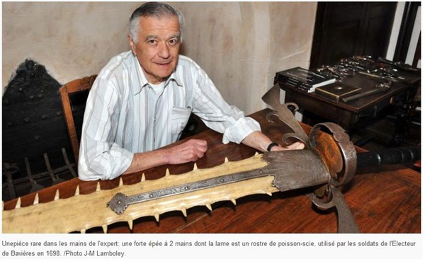 На вершине рейтинга самого удивительного оружия, несомненно, находятся мечи из рострума. Рострум – это целостный хрящевой вырост на черепе некоторых рыб, в частности, рыб семейства осетровых, а также рыбы-пилы и рыбы-меч. Самые замечательные костяные мечи делались именно из носа рыбы-пилы. Он не только отличается большой длиной, но и весьма напоминает меч с волнистым клинком - "фламберг". Вот только вместо изгибов металла здесь страшные зубцы по краям! К числу таких костяных монстров относятся три меча, о которых мы вам сейчас расскажем. Слово нашему автору Виктории Барановой. Ставьте лайк и подписывайтесь на наш канал в Дзене, чтобы мы поняли: вам интересно. Тогда мы будем делать новые посты. Костяной меч номер 1 Начнем мы с того меча, который показан на заглавной фотографии. Вот он в полном размере: Этот знаменитый костяной меч конца XVII века принадлежал курфюрсту Баварии Максимилиану II. Общая длина меча - 212 см, а длина клинка - 148 см. В первой трети он оснащен стальными накл