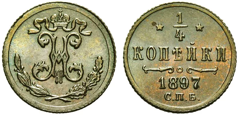 1/4 копейки Николая II. Стоимость медных монет Российской империи.